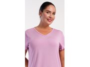 Dámská bavlněná noční košile s krátkým rukávem Liliana. Košile má příjemnou délkou nad kolena a výstřih do V, je ozdobena žlábkováním na rukávech a spodním lemu. Použitý materiál s podílem bavlny 95% je příjemný a poddajný na dotek.