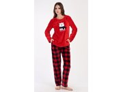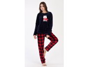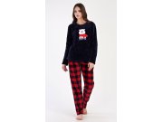 Dámské softové pyžamo dlouhé Méďa se šálou. Dámské pyžamo se skládá z trika s dlouhým rukávem a dlouhých kalhot. Triko s kulatým výstřihem je ozdobené aplikací medvídka a nápisem READY FOR WINTER. Kostkované kalhoty jsou zakončeny panty, mají praktické kapsy a ke stažení slouží guma a šňůrka. Použitý softový materiál je hebký a poddajný na dotek. Pyžamo je vhodné i jako domácí oblečení, obzvlášť ho oceníte v chladných dnech.