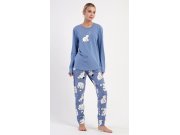 Dámské bavlněné pyžamo s dlouhým rukávem Méďa a tučňák.