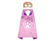 Tento kostým inspirovaný odvážnou pilotkou Skye z Tlapkové patroly obsahuje růžový plášť s logem tlapky a masku ve stylu její růžové pilotní čepičky s oušky. Plášť je vyroben z jemného, lesklého saténu v růžovo-fialové kombinaci, která perfektně vystihuje Skyein typický styl. Díky suchému zipu se snadno obléká a pohodlně nosí po celý den plný her a zábavy.