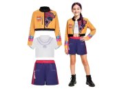 Dětský kostým inspirovaný postavou Rumi z Demon Hunters v moderním K-pop stylu je skvělou volbou pro malé fanoušky hudby, tance a akčních hrdinek.