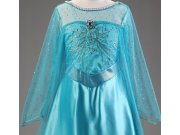 Dětský karnevalový kostým Elsa s flitry. Šaty kostýmu jsou pokryty vrchní třpytivou látkou, která vytváří