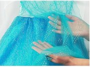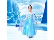 Dětský karnevalový kostým Elsa s flitry. Šaty kostýmu jsou zdobeny flitry, které vytvářejí nádherný