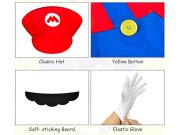 Tento kostým přináší perfektní kombinaci barev a detailů, díky kterým se vaše dítě promění v opravdového Maria. Skládá se z overalu s designem modrých kalhot s kšandami se žlutými knoflíky a červeného trička, červené čepice s charakteristickým „M“, bílých rukavic a černého nalepovacího knírku, které společně tvoří kompletní a autentický vzhled.