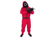 Ponořte se do světa napětí a strategie s kostýmem "dozorce". Tento kostým je inspirován ikonickou postavou dozorců, kteří v seriálu dohlížejí na smrtící hru plnou zvratů a nečekaných situací. Jeho výrazný červený overal s kapucí a černá maska s geometrickým symbolem okamžitě upoutá pozornost a dodá vám tajemný vzhled, který vzbudí respekt i zvědavost na každém tematickém večírku, karnevalu či cosplay akci.