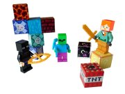 Figurky věrně napodobují známé charaktery ze hry Minecraft – od hráčů, zombie, kostlivců až po endermana nebo creepera. Nechybí ani tematické bloky jako TNT, tráva, dřevo či láva, které znásobují možnosti kreativní hry.