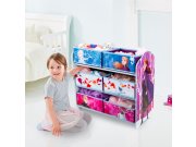 Dětský regál na hračky s motivem ledového království potěší všechny milovníky této pohádky. Nudné uklízení hraček se může stát zábavou a hračky si vždy najdou své místo v dětském pokoji. Organizér je ideální k uskladnění hraček, obsahuje 6 plátěných boxů, řešených tak, aby si děti mohly ukládat hračky samy.