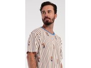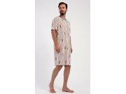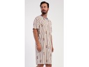 Pánská bavlněná noční košile s krátkým rukávem Bear. Proužkovaná pánská noční košile s kulatým výstřihem a délkou po kolena je potištěna medvídky. Použitý materiál s obsahem bavlny 100% je příjemný a poddajný na dotek.