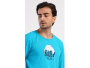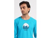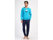 Pánské dlouhé bavlněné pyžamo Sleep. Pánské pyžamo se skládá z trika s dlouhým rukávem a dlouhých kalhot, které jsou zakončeny lemy. Triko s kulatým výstřihem zdobí na hrudi obrázek ledního medvěda a nápis SLEEP WELL. Jednobarevné kalhoty mají v pase gumu, šňůrku na stažení a praktické kapsy. Použitý materiál s obsahem bavlny 100% je poddajný a příjemný na dotek.