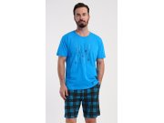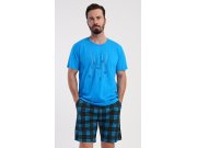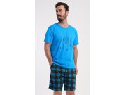 Pánské bavlněné šortkové pyžamo Tetris game. Pánské pyžamo se skládá z trička s krátkým rukávem a krátkých šortkových kalhot. Tričko s kulatým výstřihem zdobí na hrudi obrázek hry Tetris. Tričko doplňují kárované šortky, které mají v pase gumu, šňůrku na stažení a praktické kapsy. Použitý materiál s obsahem bavlny 100% je příjemný a poddajný na dotek.