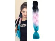 Pletený copánek Jumbo Fantasy 60 cm je stylový doplněk, který okouzlí výraznou barevnou kombinací a velkým objemem. Díky plynulému přechodu odstínů od černé přes růžovou až po tyrkysovou vytváří jedinečný ombré efekt, který zaujme na první pohled.