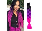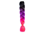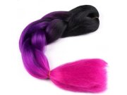 Pletený copánek Jumbo Unicorn o délce 60 cm je ideální doplněk pro všechny, kteří chtějí svému účesu dodat výjimečný barevný efekt. Jeho plynulý přechod z temné černé přes fialovou až po neonově růžovou a korálovou barvu vytváří efekt duhové hřívy – přesně jako u jednorožce.