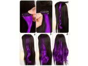 Vlnitý příčesek ve fialové barvě se sponkou je ideální volbou pro každého, kdo chce rychle a snadno oživit svůj účes bez nutnosti barvení vlasů.